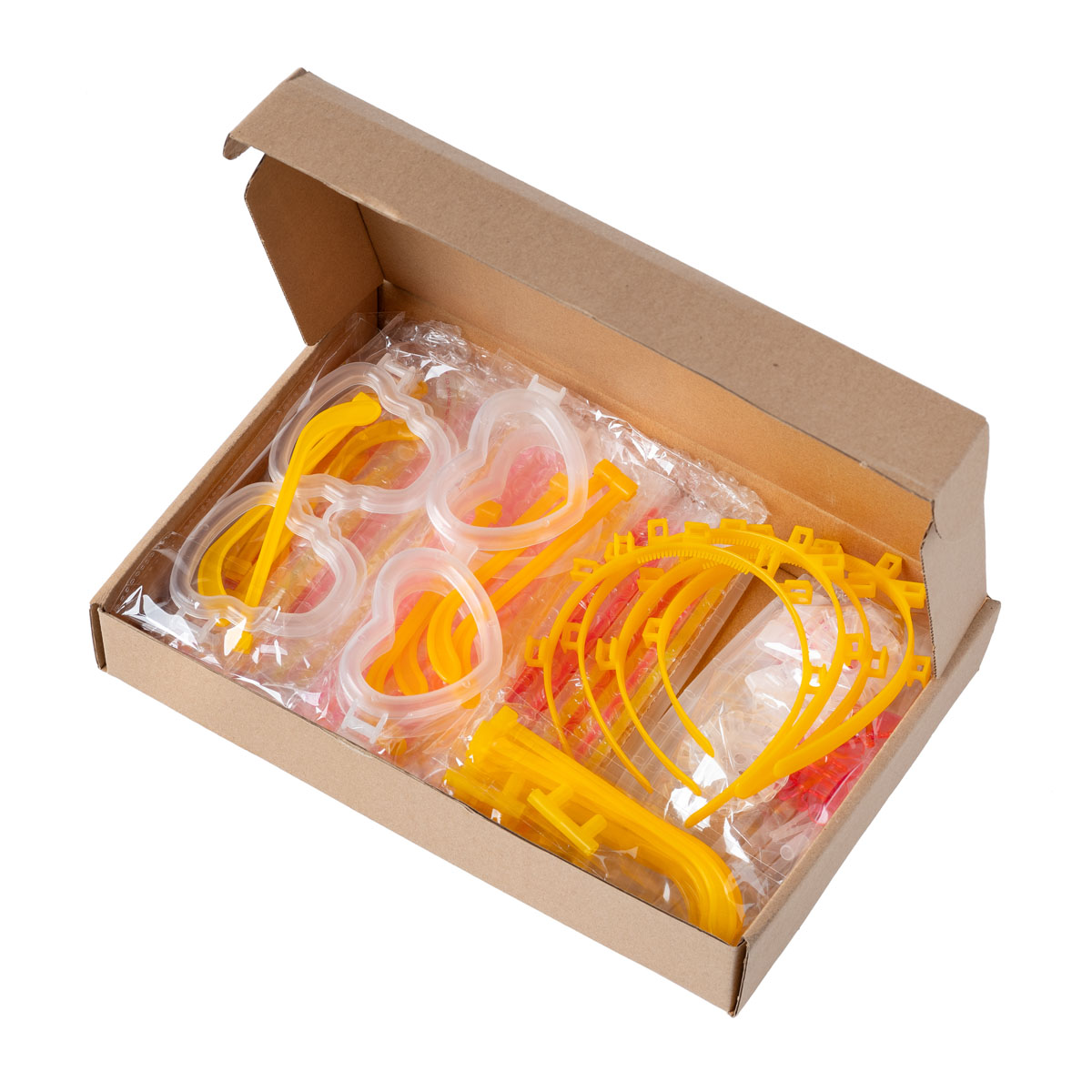 With this colorful glowsticks party pack, make your birthday, children’s party, theme party, etc. even more festive! This complete party pack contains extra glowsticks in various colors. Break the sticks and create the most fun illuminated shapes with the included accessories and fastening parts. From glasses to headbands and much more, everything is possible. With a simple bend of the glow sticks, you activate the glowing effect. The lighting adds a colorful and striking accent to any party. With this glowsticks party pack, you make every party a success!