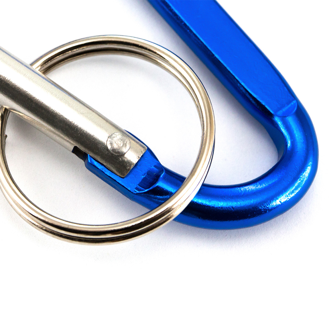 Never lose your keychain again with this handy carabiner! The carabiner is made of sturdy aluminum and can easily be clipped onto your bag or pants. Attach your keys to the included keyring and then clip it onto your pants or bag, and you’ll always have your keys at hand!