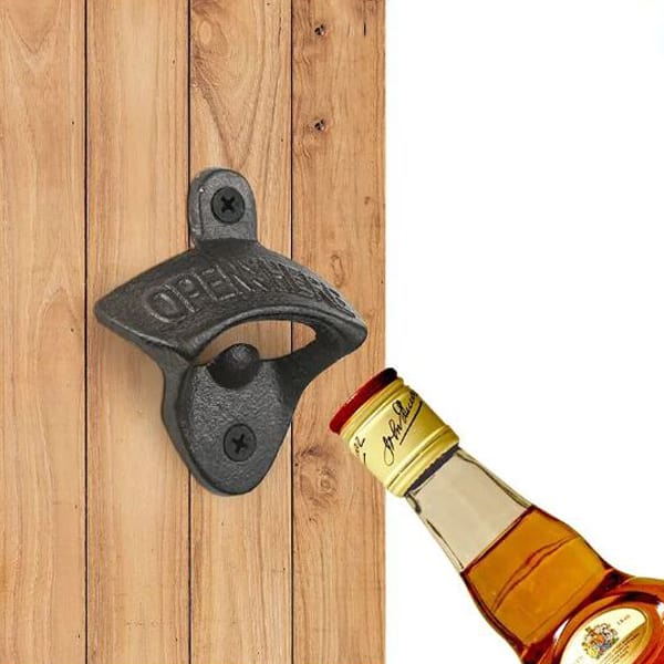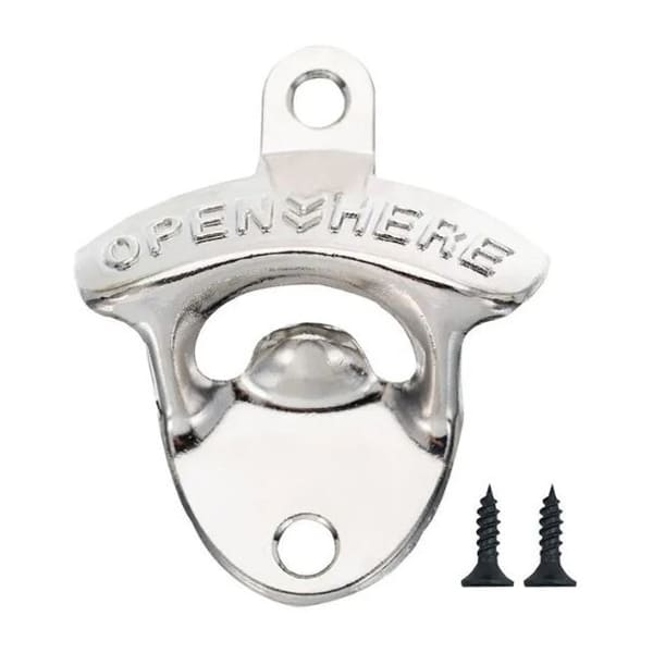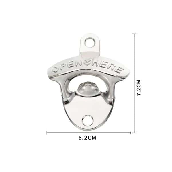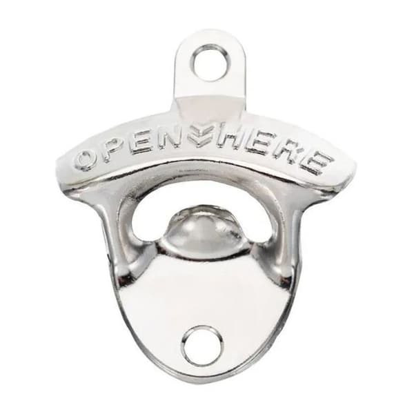 Complete your home bar or man cave with this wall-mounted bottle opener! This sturdy bottle opener is made from high-quality metal, ensuring it will last a long time, allowing you to open your favorite beers or other bottled drinks again and again. The silver finish not only suits any interior but also adds a touch of style to the space. With the 2 included screws, the opener can be easily and securely fixed to the wall. This opener can be effortlessly mounted on any wall, whether in the kitchen, home bar, or garage. Simply place it at the desired height for optimal accessibility and convenience. What truly sets this bottle opener apart is the text “open here”. This makes it clear to all your guests where they can open their beer to quench their thirst. This wall-mounted silver bottle opener is the perfect accessory for any beer enthusiast!