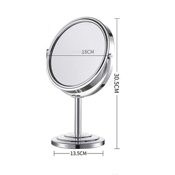 With the use of this make-up mirror, you will always look well-groomed! The double-sided mirror is tiltable and offers 2 different magnifications to meet all your needs. 1 mirror has 1x magnification and is perfect for a full face view and applying, for example, foundation or blush. The other mirror has 3x magnification and is ideal for detailed work, such as applying eye make-up or plucking eyebrows. Placed on a sturdy stand, the mirror can be easily tilted to find the optimal viewing angle whether you are sitting or standing. This makes the mirror ideal for use in the bathroom, on your make-up table, or even on the go!