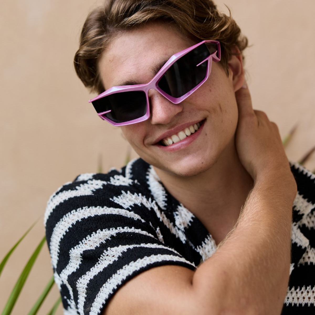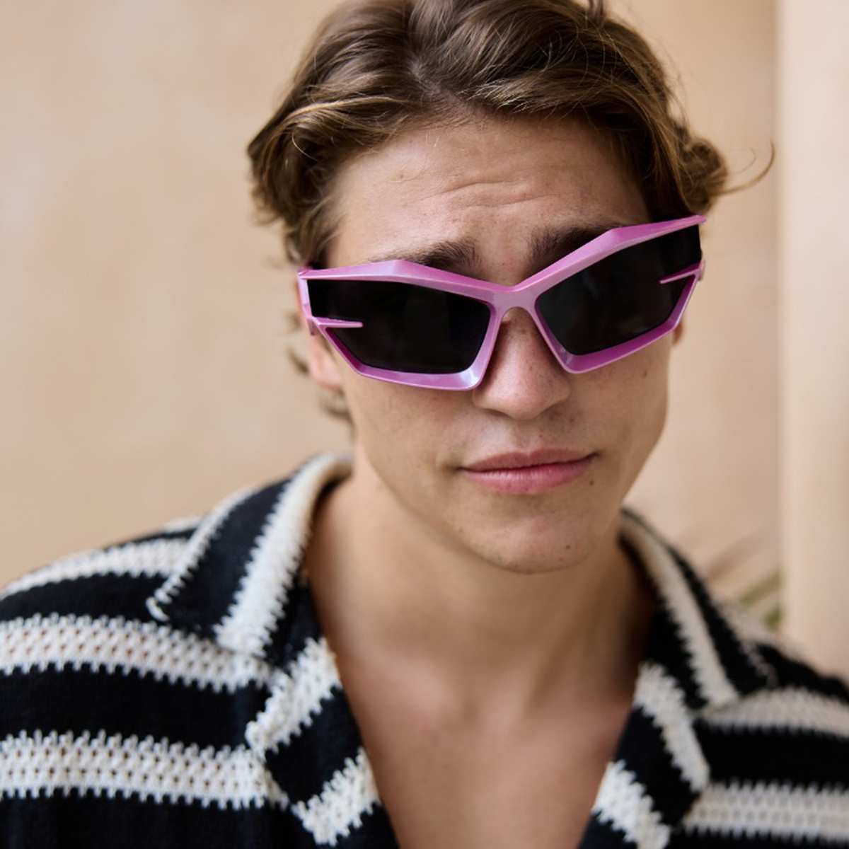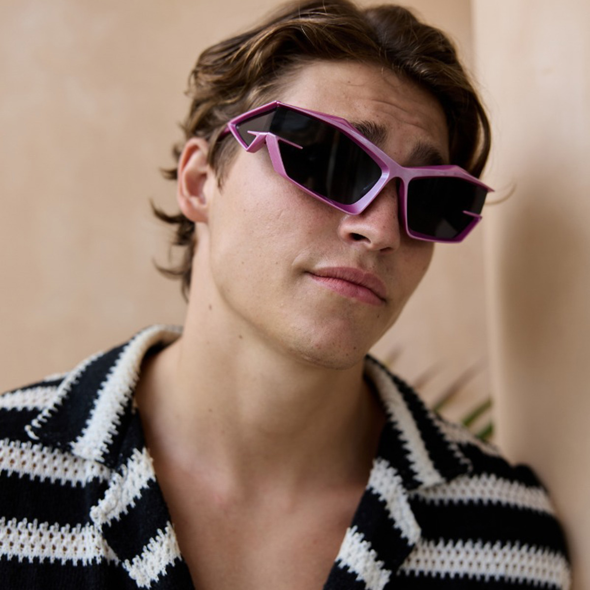 This purple pair of sunglasses is anything but standard. The rectangular design with side lenses creates a futuristic look that seems straight out of a sci-fi movie. Perfect for those who dare to stand out, whether you’re at a festival, walking through the city, or taking your outfit to the next level. The fully rimmed frame is made of lightweight polycarbonate and features a matte finish for a sleek, modern appearance. The dark lenses provide UV400 protection (category 3), keeping your eyes safe from bright sunlight and harmful rays. The integrated side lenses not only offer extra protection from sunlight coming in from the sides but also give these sunglasses a unique, wraparound look. Upgrade your style and protect your vision with these bold sunglasses!
