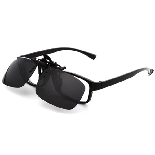 Is it sunny outside and would you like to wear sunglasses, but you already have regular glasses! Then these black clip-on sunglasses are perfect for you! You can easily attach the clip-on to the bridge of your glasses with the plastic clip on the back. The clip-on has polarized lenses, reducing glare from bright sunlight and the UV400 filter will protect your eyes from harmful UV radiation. If you sit in the shade for a while or the sun disappears behind the clouds, you can easily flip up the clip-on without having to take it off your glasses. A true must-have for all glasses wearers on sunny days!