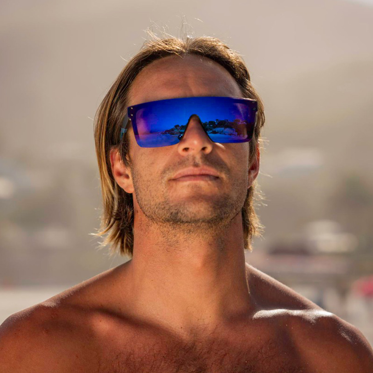 Are you ready to shine at your next festival? This trendy festival sunglasses are just what you need to complete your look. With its timeless square shape, it effortlessly suits various face shapes and adds an edgy touch to any outfit. The rimless frame in black with blue/purple mirrored lenses exudes style and boldness, perfect for a boho-chic look or a modern urban vibe. These sunglasses are made to stand out and seamlessly match the energy of any festival. But this eyecatcher is not just beautiful to look at. The UV400 coating (category 3) on the mirrored lenses protects your eyes optimally against harmful UVA and UVB rays. So you can dance, chill, and enjoy the sun without worries.