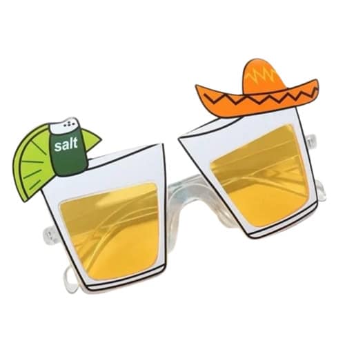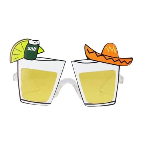 Complete your costume with these cheerful tequila party sunglasses! Made of sturdy plastic and designed to catch attention, these glasses are perfect for anyone wanting to add some extra summer flair to their look. The glasses have yellow lenses and are ideal for sunny days or tropical theme parties. The fully rimmed frame ensures a comfortable fit and a striking appearance, while the shot glasses shape immediately brightens up your outfit. These glasses are the perfect choice for parties, festivals, or just a summer day. Put them on and steal the show!