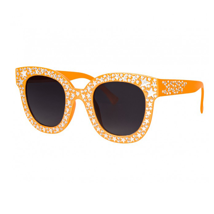 Get ready to shine on King’s Day and complete your orange outfit with these fun orange sunglasses with rhinestones! The glasses have black plastic lenses and a fully rimmed frame. Thanks to the orange frame with stars and rhinestones, you will definitely stand out among the revelers. These sunglasses add a royal touch to your look. With these trendy orange sunglasses with rhinestones, you’re all set to celebrate King’s Day!