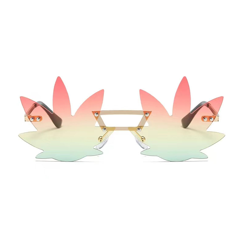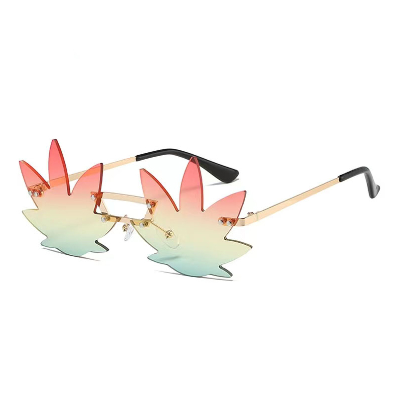 Complete your festival outfit with these weed leaf sunglasses! The glasses have red, white, and green plastic lenses in the shape of cannabis leaves, and with the trendy design, you are guaranteed to stand out among partygoers. The frameless design of the sunglasses provides a light and comfortable feeling when worn, while the UV400 coating in the lenses will protect your eyes from harmful sun rays. These trendy festival sunglasses add a playful and quirky twist to any outfit. Add a dose of originality to your summer wardrobe and complete your festival outfit with these weed leaf sunglasses!