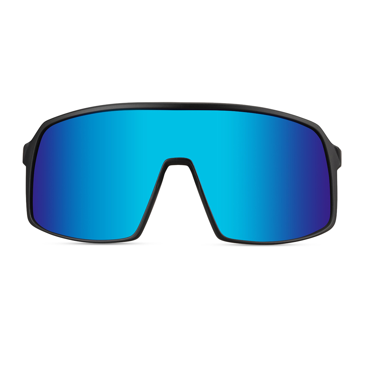 Experience stylish sun protection with our black sports sunglasses featuring a matte frame and blue mirrored lenses. These sunglasses combine style with practical functionality. The mirrored lenses complete the look while also reducing glare and providing clear vision, even in bright sunlight. These sunglasses are designed for comfort, and you can feel it in every detail. The lightweight matte frame ensures effortless wear, while the black with turquoise temples offer a secure fit regardless of your face shape. This means you don’t have to worry about your glasses slipping. Whether you want to boost your style, protect your eyes, or simply add a touch of confidence to your look, our black sports sunglasses with matte frame and blue mirrored lenses are the perfect choice.