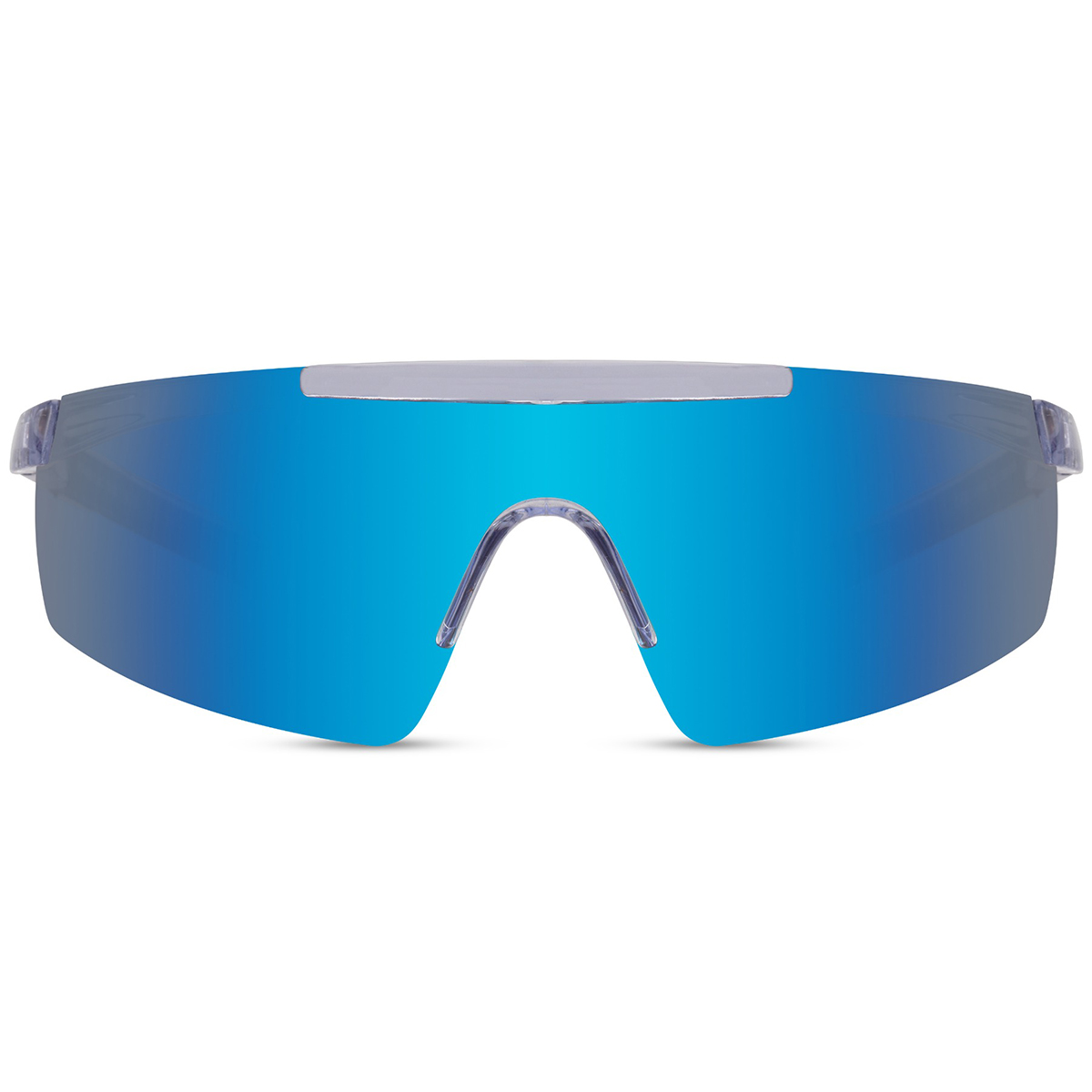 Experience stylish sun protection with our transparent sports sunglasses featuring a glossy semi-rimless frame and blue mirrored lenses. These sunglasses combine style with practical functionality. The mirrored lenses complete the look while reducing glare and promoting clear vision, even in bright sunlight. Designed for comfort, you’ll notice the difference everywhere. The lightweight frame makes them easy to wear, while the transparent and black glossy temples provide a secure fit, regardless of your face shape. This means you don’t have to worry about your sunglasses slipping. Whether you want to boost your style, protect your eyes, or simply add a touch of confidence to your look, our transparent sports sunglasses with a glossy semi-rimless frame and blue mirrored lenses are the perfect choice.