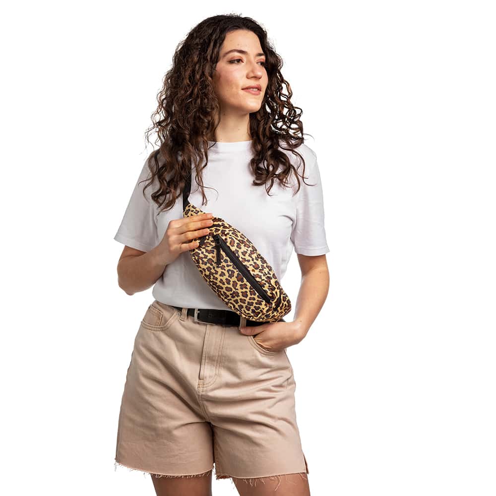Complete your festival outfit with this leopard print Yucka premium fanny pack! Whether you’re taking a walk, exercising, or heading to a festival, with this hip bag you always have all your important items within reach! The bag is made of sturdy polyester and has a spacious main compartment where you can easily store your phone, wallet, keys, Party cap, or festival glasses. There is also a small front pocket to store smaller items. The band around your hip is adjustable, so you can always make the bag fit perfectly, and with the zipper, you can easily close the 2 compartments. The bag is 25 x 17 x 8 cm in size. Complete your festival outfit with this fun leopard print fanny pack! Also ideal to take with you on trips or during sports.