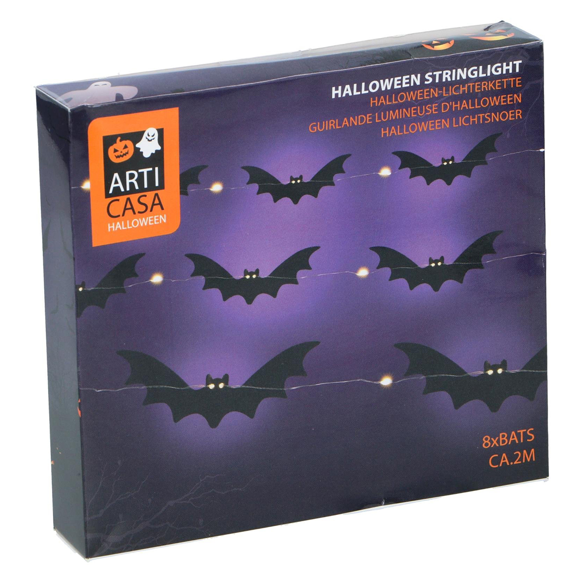 Turn your home into a true haunted house with this Halloween string of lights with bats, a must-have for every Halloween enthusiast! This decorative garland is 2 meters long and consists of 8 black bats, each fitted with subtle LED lights that cast a dark, mysterious glow. The bats are made of sturdy, lightweight material and measure 4 x 11 cm. They hang from a thin, flexible transparent wire that is easy to attach to walls, windows, doors, or furniture. Thanks to the battery compartment (operates on 2 AA batteries, not included), you can place the string anywhere without depending on power outlets. Whether you’re throwing a Halloween party, want to set up a spooky shop window, or simply wish to add a creepy atmosphere to your interior, this illuminated bat string guarantees just the right spooky ambiance. The combination of the bats’ dark silhouettes and the soft lighting makes this decoration both subtle and spectacular. Hang the garland, for example, above a table with Halloween snacks, along a wall with cobwebs, or by the front door to greet trick-or-treaters in style. Combine it with pumpkins, spiders, ghosts, or other Halloween lights for an extra chilling effect. With this bat light garland, you can easily and stylishly bring the perfect dose of creepiness into your home, ready to give every visitor goosebumps during your delightfully spooky Halloween party!