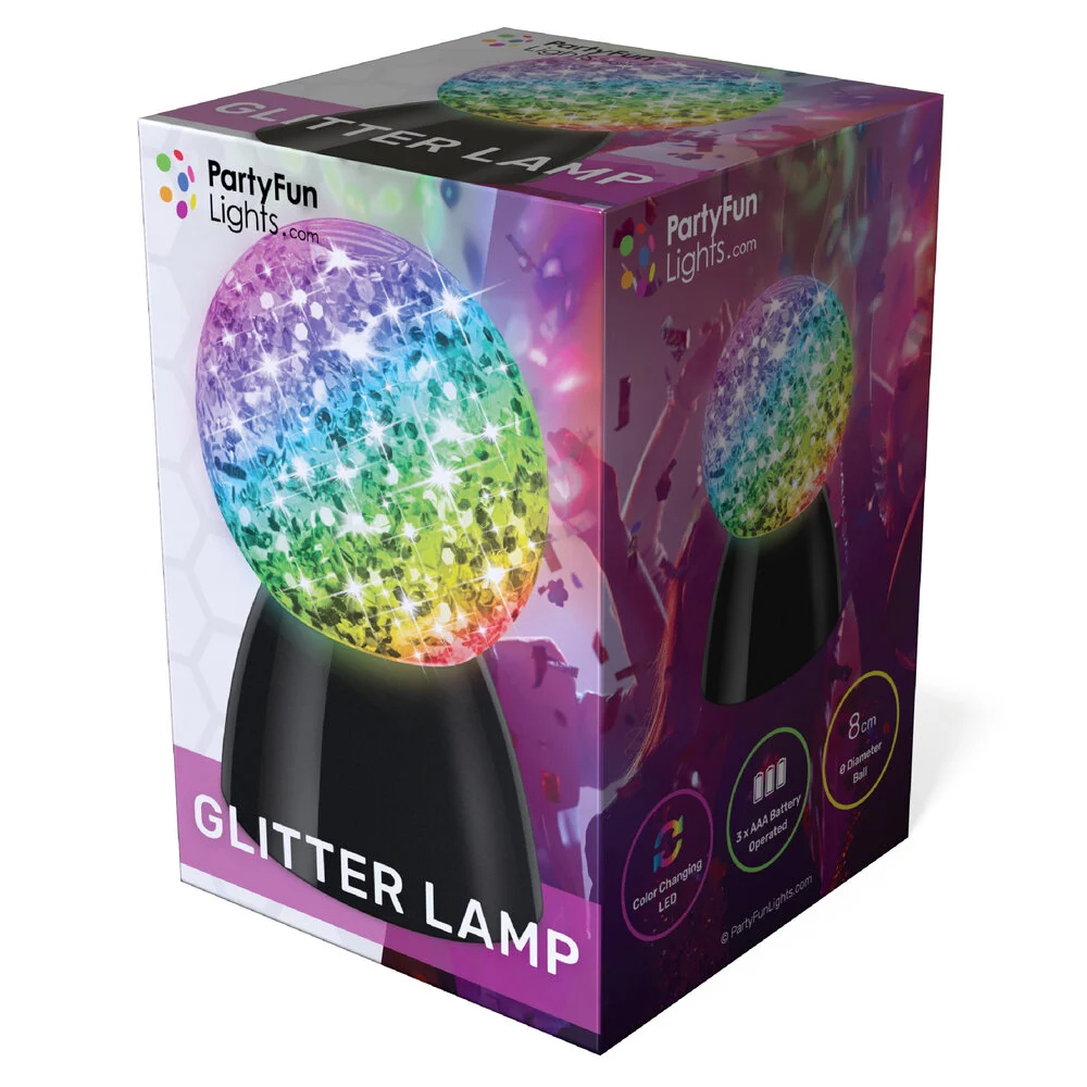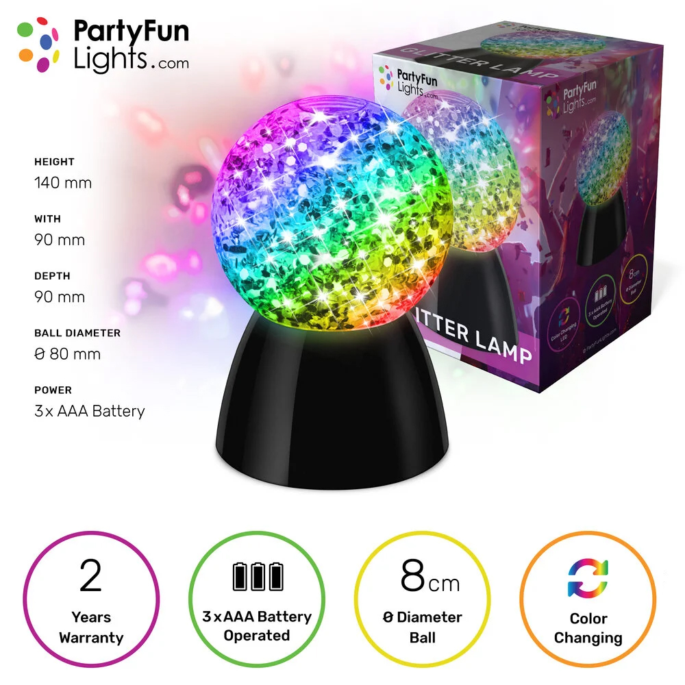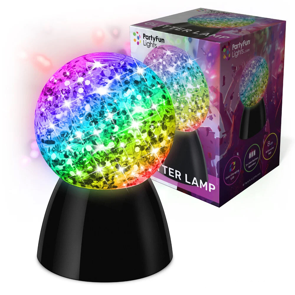 The glitter reflects and spreads the light throughout the room, providing a calming, cozy, and luxurious feel. Its compact size makes it suitable for any spot in the home.
