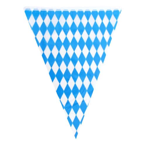 With a length of 10 meters, this bunting offers enough range to decorate a large hall, tent, or garden. The flags, each measuring 30 x 19.5 cm, are printed with the iconic blue/white checkered pattern that instantly evokes associations with the famous Oktoberfest. The bright colors and the classic pattern provide a lively and festive ambiance.