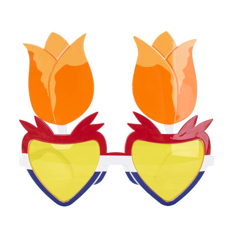 Let your love for the Netherlands shine on your face with these “I Love Holland” glasses, the ultimate accessory for every Orange fan! This unique party pair is designed for anyone who loves color, coziness, and Dutch pride. With two large orange tulips on top and lenses in the colors of the Dutch flag, these glasses are the perfect mix of humor, style, and festive spirit. Made from sturdy plastic, they’re surprisingly lightweight, making them easy to wear all day during King’s Day, sporting events, or festivals. The eye-catching orange, red, white, blue, and yellow accents ensure you’ll instantly stand out in any crowd, whether you’re strolling the flea market, partying in the stadium, or dancing at an Orange celebration. The heart-shaped lenses add a playful, cheerful touch, while the tulips on top symbolize classic Dutch gezelligheid. Combine the glasses with other accessories like an orange hat, scarf, or Hawaiian lei for a complete, festive look. Whether you’re cheering for the Dutch national team, attending a Holland-themed evening, or just want to shine at a theme party, with these “I Love Holland” glasses with orange tulips, you’re sure to create a lively atmosphere and bring a smile to everyone’s face!