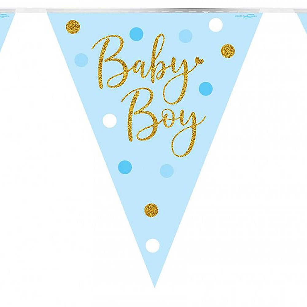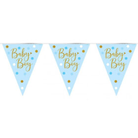 The birth of your son is a milestone you never want to forget. With this beautiful blue bunting, you make this special moment even more unique. The bunting is made from high-quality foil material, is 3.9 meters long, and consists of 11 flags. The flags feature the text ‘baby boy’ and are finished with a cheerful confetti print. Also great to use during your baby shower or gender reveal party.