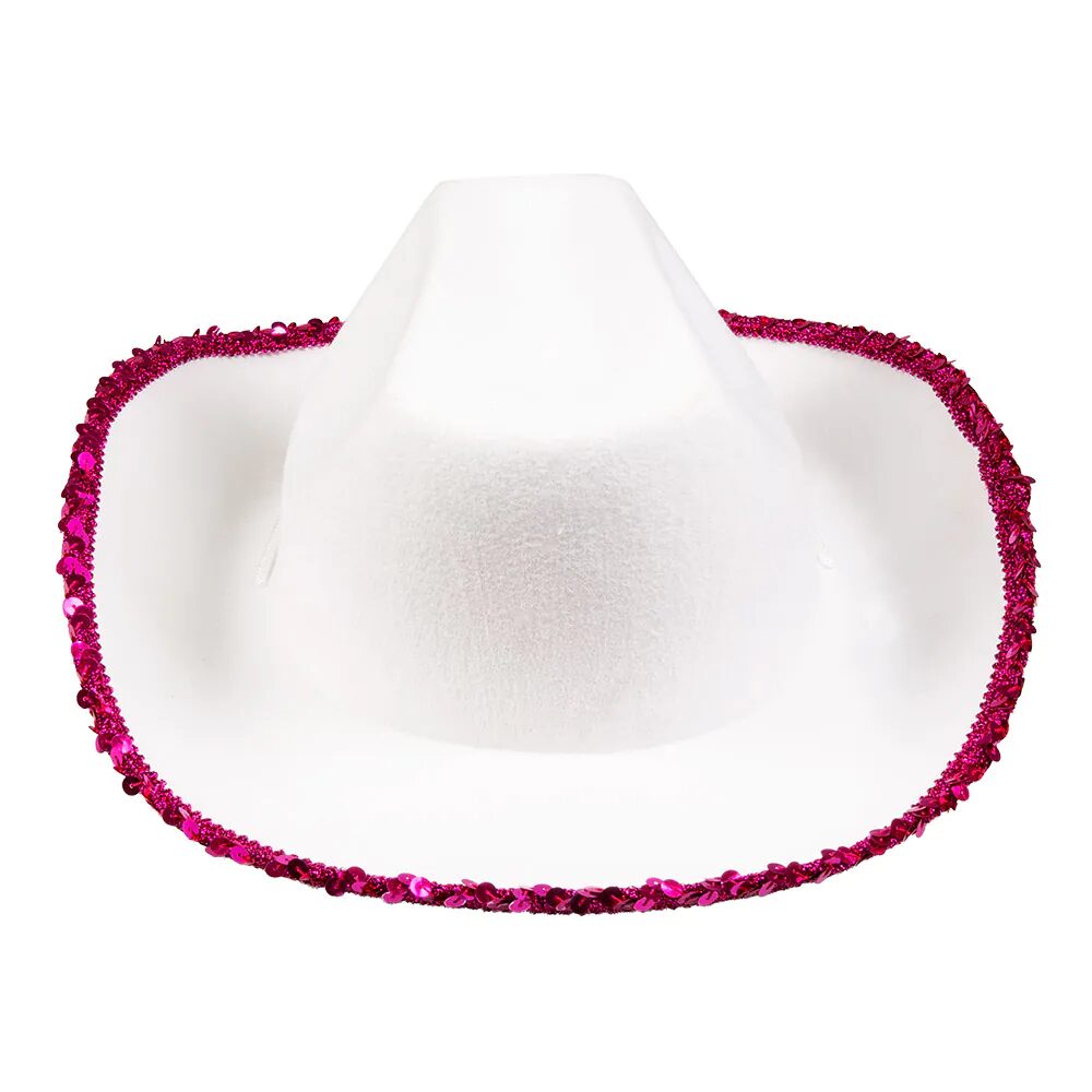 Steal the show with this sparkling cowboy hat with pink sequins! This unique hat is made of polyester and is a perfect blend of western and glamour. The stylish white color is beautifully complemented by a brim full of glittering pink sequins and a sparkling pink star. You’ll definitely stand out, making this hat perfect for cowboys and cowgirls who want to shine with their outfit. The hat has a head circumference of 59 cm and thanks to the adjustable chin strap, it stays securely on your head, ensuring a comfortable fit. Whether you’re going to a themed party or partying at a festival, this hat gives every occasion a festive flair. With this cowboy hat, you’re ready to shine on the dance floor, in the saloon, or wherever the party takes you. An absolute must-have for festive occasions where style and fun are key!