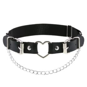 Show off your boldest side with this black faux leather leg harness, featuring a heart-shaped ring and playful silver chain. The buckle closure and elastic band ensure a perfect fit, both comfortable and secure—even during the wildest nights in the techno scene, at a Pride parade, or at a rave. The combination of sturdy faux leather and shiny metal details gives this accessory an exciting touch and a sexy edge. Dare to stand out, dare to seduce—this is your statement piece!
